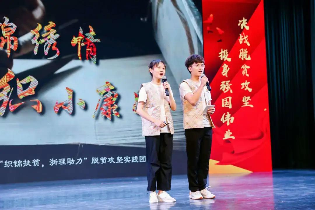 经过文本初审、线上复赛、秘密答辩、公开答辩等环节,最终,我校申报的6支团队共有2支队伍获得“十佳团队”称号、1支队伍获得“十佳团队提名”称号、另有3支队伍获得“百强团队”称号,十佳及提名奖获奖数量位居全省高校第一位,学校荣获“最佳组织奖”。其中,2支获得“十佳团队”的队伍都来自于纺织学院,他们分别是“我为丝绸代言——青年大学生走进丝博馆实践团”和“织锦扶贫 浙理助力”脱贫攻坚实践团。