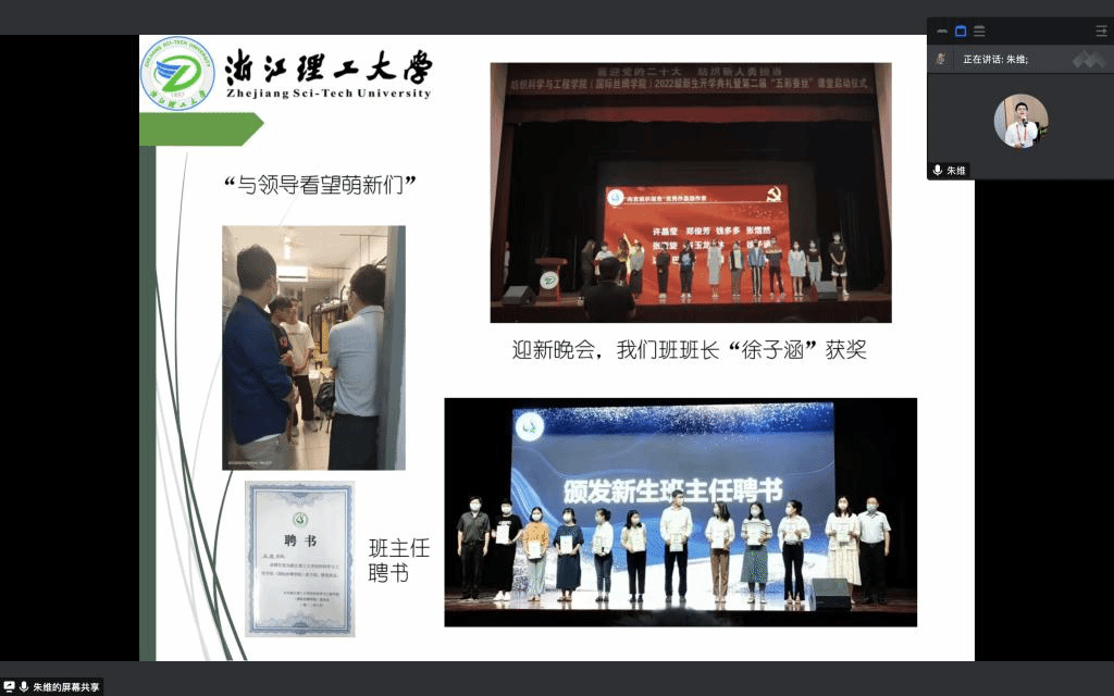 在本次线上班主任“春蚕奖”的评选活动上,15名班主任老师有别于一般的综述,而是瞄准自身工作实际案例,讲述了自身在班级建设管理中的尝试,特别是陪伴学生成长的动人故事,语言平实,思路清晰,如:资历较为丰富的班主任老师分享了自己多次的班主任生涯经历,表示应着重抓好学风建设和科研引领作用,带动班级学生毕业后实现高质量深造和高品质就业;新晋年轻的班主任老师则表达了通过寝室走访调研、班会思想引领、晚自习答疑解惑走进青年学生内心的重要性。参会的班主任老师在评选活动现场都分享了自己开展思政育人工作的心得感悟,同时也就转专业现象、考研深造率等班级管理的热点、难点话题进行了有益的探讨,成为不同专业、不同年级班主任开展业务交流提升带班能力的“现场教学”,充分展现学院班主任工作的热切形象。