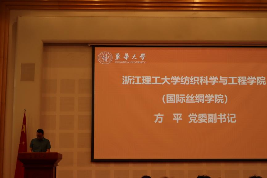 方平在欢迎会上致辞,他介绍了学院“知识赋能、实践启能、文化塑能、协同增能”的矩阵式研究生学术精神培养模式以及“5个一”为主干的学术文化育人举措,受到与会师生的一致首肯。在之后的研究生工作专题研讨会上,学院教师代表围绕“聚焦民族复兴大任,培育时代新人”进行经验交流,达成了诸多一致性意见。期间,师生代表还饶有兴致参观东华大学校史馆与纺织学院一流学科展示厅,感受东华大学的深厚底蕴与纺织的新时代新发展。下午,六所院校的师生分别在图文信息中心第三会议室和第四会议室进行学术交流活动。来自六校的24名学生代表分别展示“纺织新材料”和“纺织新技术”成果,我校黄程玲和陈亮2位同学分别就自己的研究现状为大家做了精心的汇报。傍晚,“锦绣年华·织圆行方”研究生文化交流文艺晚会在东华大学图文信息中心举办,此次晚会由6个学院的研究生带来,分为破冰、暖融、沸腾三个环节,节目形式多样,街舞、歌曲演唱、魔术以及相声,为大家带来了一场视听盛宴,也增强了文化交流。