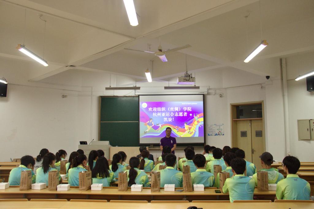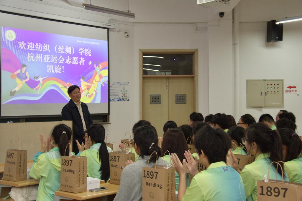 现场,学院辅导员为志愿者们准备了丰富的礼品,希望“小青荷”们能承载这份荣光、这段记忆,讲好纺织人的亚运故事。