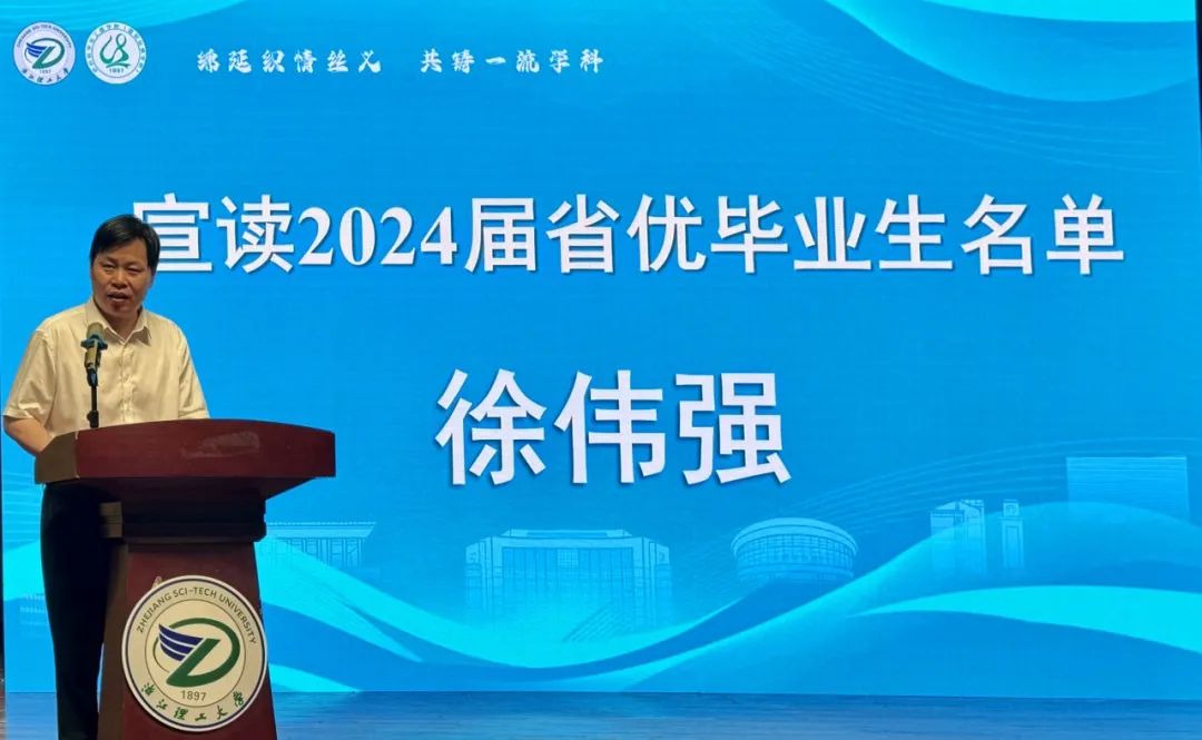 学院党委书记徐伟强宣读省校优秀毕业生名单,他指出,希望优秀毕业生们戒骄戒躁,牢记母校嘱托、家庭期望、民族希冀,在新征程上继往开来,为人才强国、纺织强国添砖加瓦;希望广大同学要以优秀毕业生为榜样,在品德上不断修养,在学术上不断精进,在能力上不断增强,在素质上不断跃升,追求卓越、勇攀高峰,以更加饱满的热情和更加坚定的信念,诠释浙理纺织人的时代担当。学院党委书记徐伟强和刘峰经理为“中大新佳励志考研奖”获得学生颁奖,嘉奖其不惧苦难、迎难而上、努力奋进的奋斗精神,为学院学生树立励志典型。