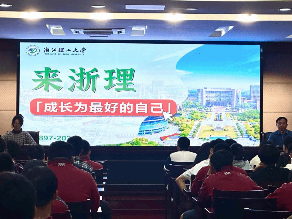文创礼品,同学们针对学业成绩、学科背景、校园环境、住宿条件等问题积极展开提问,进一步领略浙理风采。