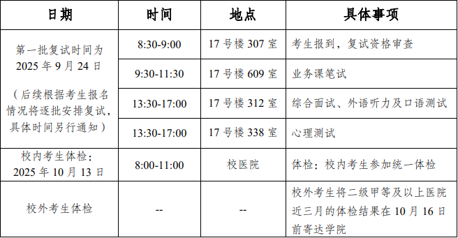 时间:第一批复试时间为2025年9月24日(周三)。