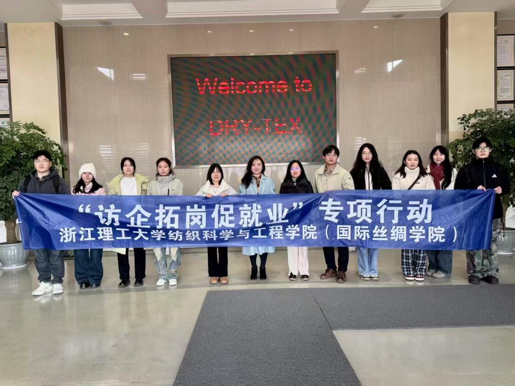 为进一步开拓就业渠道,调研企业需求,推进校企协同育人,扎实做好“访企拓岗”专项行动,2月19日上午,纺织(丝绸)学院党委书记苏淼、党委副书记张孝凤一行赴浙江东进新材料有限公司走访调研。浙江东进新材料有限公司副总经理谢国炎、人事经理沈碧颖、研发经理乔路阳以及在企业工作的校友代表热情接待师生一行。