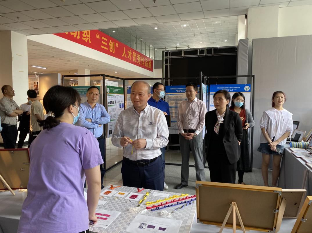 展览中,中国工程院院士、校长陈文兴,副校长许慧霞,教务处处长王尧骏,教务处副处长胡明等领导亲临现场参观,与作品创作学生和指导老师亲切交流,深入了解各类作品的学术内涵、创作特点、应用前景等内容,充分肯定了学生和指导老师们的辛勤付出,并对学生的作品和发展提出了建议和期望。校长陈文兴指出,本次作品展以实际行动展示了纺织专业人才培养成果,落实了“三创”人才培养目标,体现了与现代纺织“绿色、智能、时尚”发展趋势的紧密融合。同时鼓励师生们再接再厉,紧跟纺织科技前沿,紧扣纺织产业需求,不断提高创新研究和实践能力,更好地服务于现代纺织产业高质量发展。