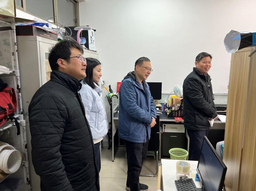 徐伟强一行深入走访了寒假开放备案的实验室,详细了解了实验室寒假运行状态和各类管理措施,对留校开展科研工作的师生进行了慰问。学院领导强调了寒假期间做好疫情防控工作及保障实验室安全运行的重要性。