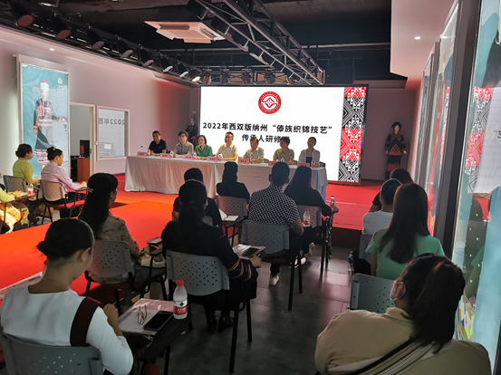 (国际丝绸学院)承办的2022年西双版纳“傣族织锦技艺”传承人研修班在西双版纳景洪市聚匠非遗文化传播交流中心举行。西双版纳州文化和旅游局副局长岩温龙、西双版纳州文化馆馆长杨柱标,8x8x