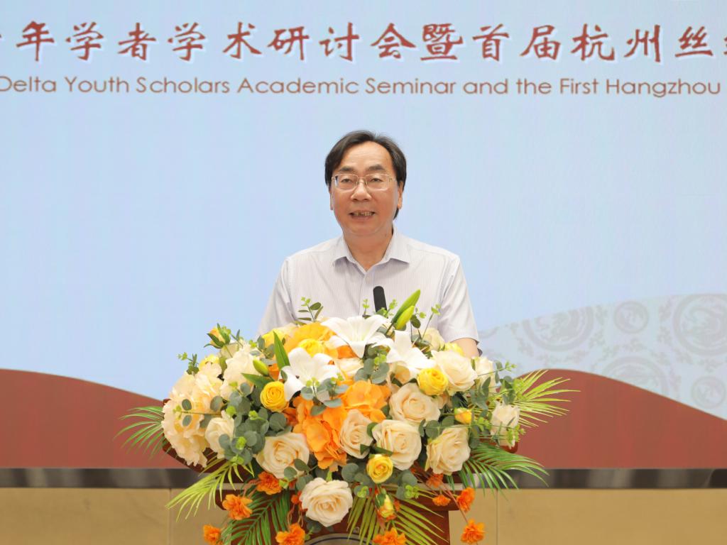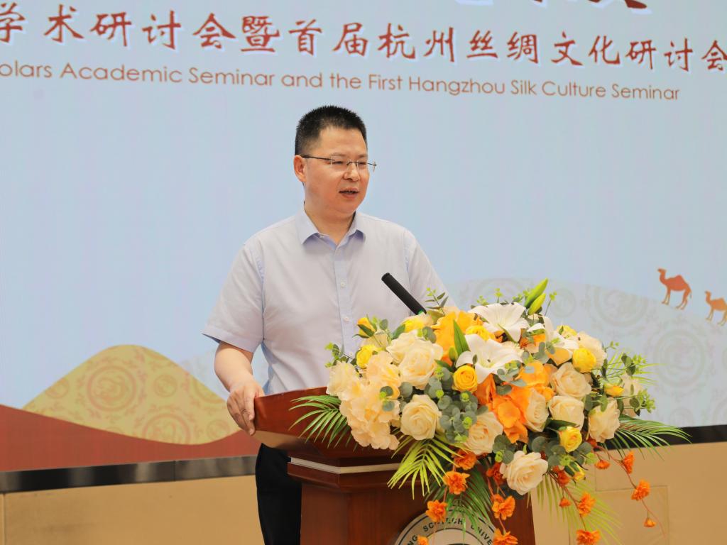 马卫光致辞。他表示,丝绸之路承载着和平合作、开放包容、互学互鉴、互利共赢的精神。杭州丝绸传递着中华文明,是东西方文化传播与交流的重要载体。此次研讨会的举办,旨在促进杭州及长三角地区青年学者在丝绸之路艺术史领域的学术交流,希望与会成员充分利用好此次研讨会,密切高校、研究机构、青年学者之间的联系合作,同时发挥政协凝聚共识、汇聚力量的作用,为弘扬丝路精神、共建“一带一路”增动力、添活力。