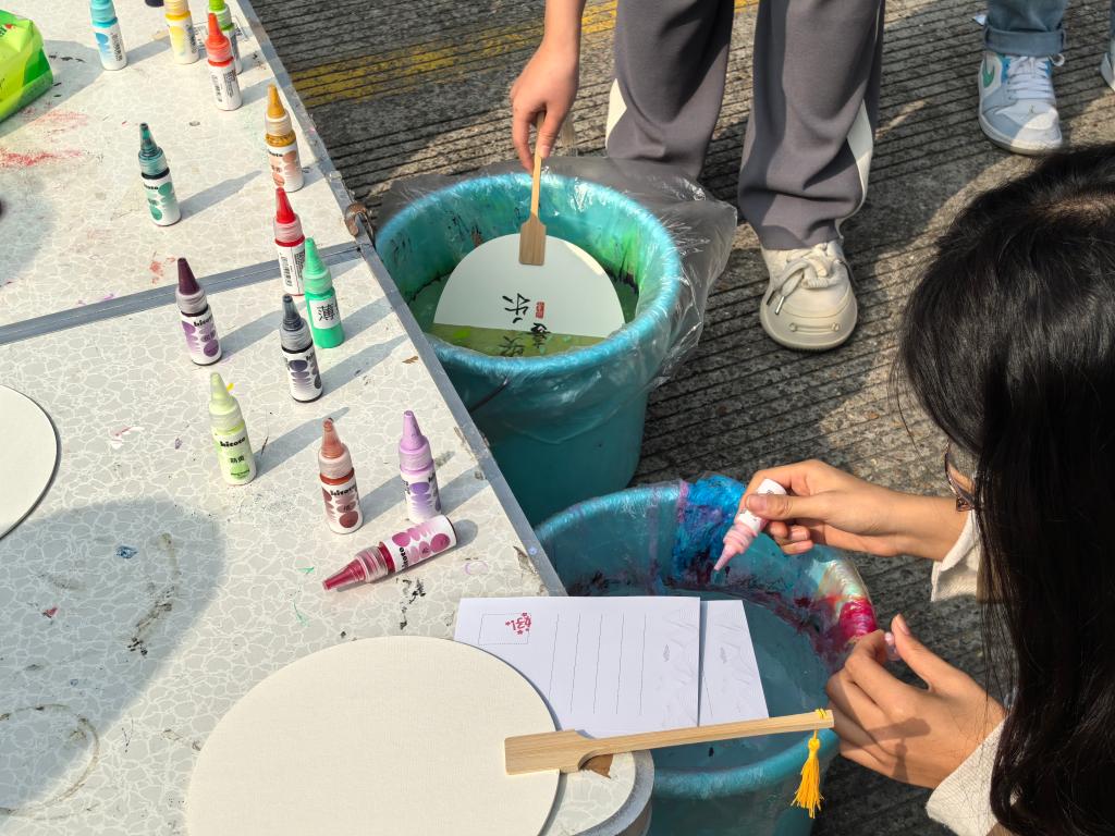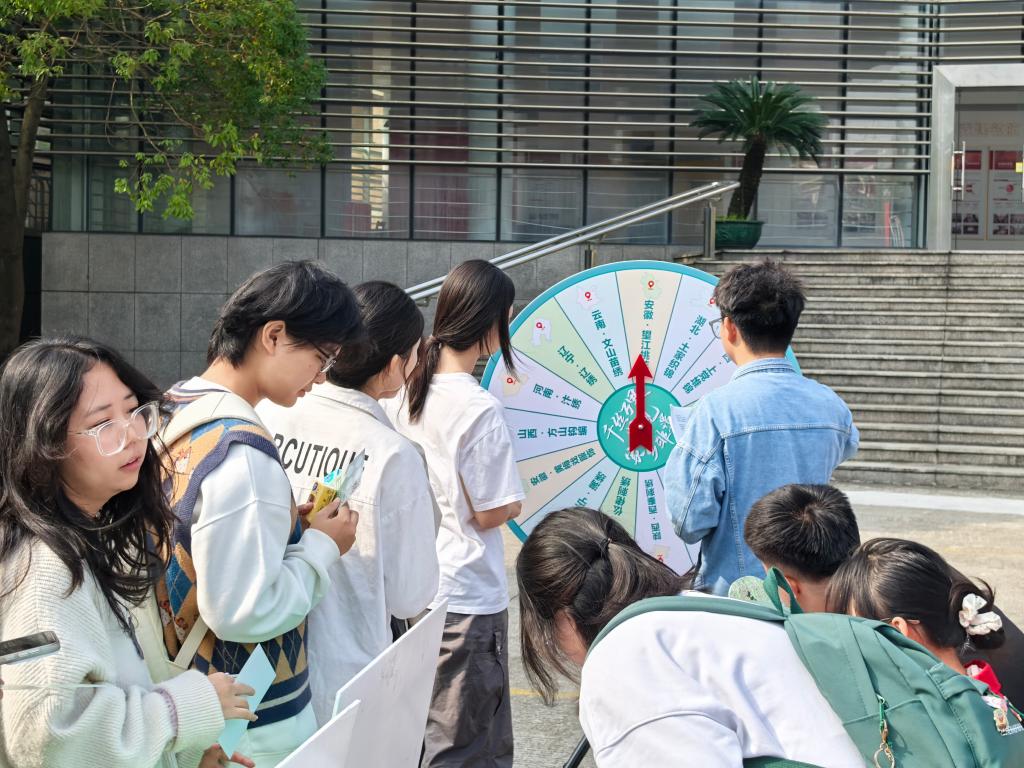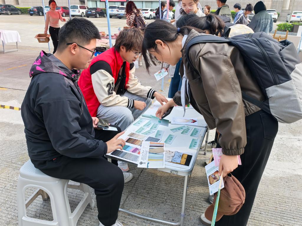 本次非遗文化“嘉年华”现场更是精彩纷呈,共设置了四大“打卡”环节——走进家乡非遗展、漆扇制作工坊体验、丝物连连看知识竞赛以及AI生成“丝”享头像趣味活动。同学们不仅可以近距离观赏各种非遗绣法的独特魅力,还能亲手体验非遗漆扇传统工艺的现代演绎。通过辨认各类布料、了解材质特性以及获取面料纺织小知识等互动环节,同学们对纺织文化有了更加深入的了解。最后,利用最新的人工智能技术,还可以生成专属于自己的“丝”享头像,感受科技与文化的完美融合。