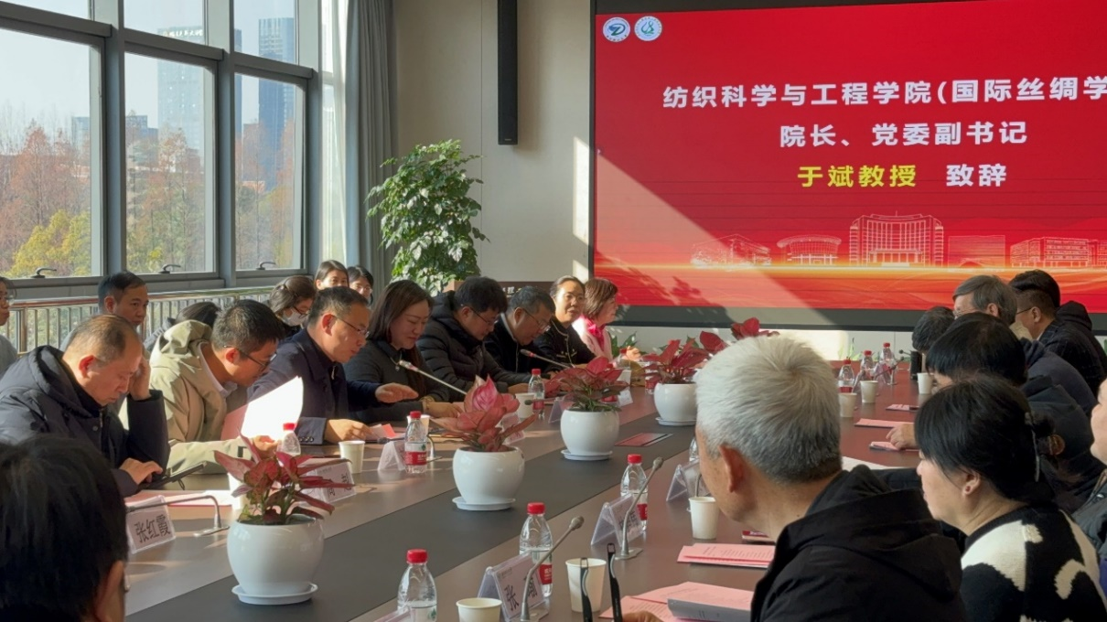 为深刻认识和把握新时代丝绸高等教育的新使命,培育新质生产力,建设国家级一流专业,2025年1月9日上午,我校丝绸设计与工程专业建设研讨会在“尚+”主楼301会议室召开。浙江省丝绸协会、江苏省丝绸协会领导成员,学院领导班子,丝绸文化品牌、面料、服装、家纺等龙头企业专家二十余位代表,以及纺织品(丝绸)设计系全体教师参会。会议由胡毅副院长主持。