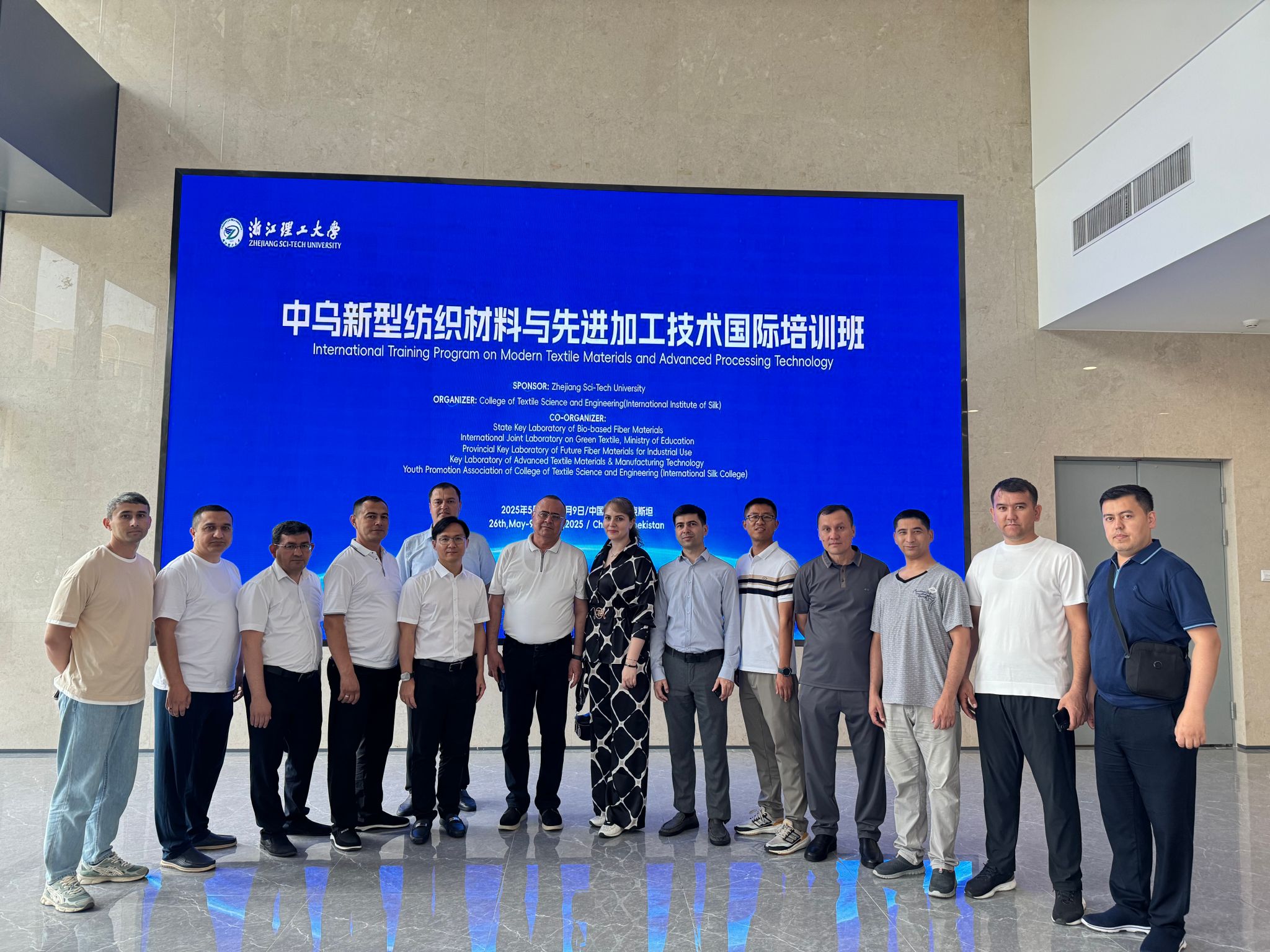 本次培训班共有来自乌兹别克斯坦塔什干纺织与轻工业学院的15名学员参加。培训内容围绕新型纺织材料与先进加工技术为主题,采取课堂教学和生产现场调研相结合的授课方式,就丝绸文化、缫丝织绸、先进纺织、产品设计与后整理等内容展开,开设了一系列全英文授课课程。培训期间,将组织学员走访参观浙江省现代纺织技术创新中心、浙江东进新材料有限公司、万事利集团等纺织相关企事业单位及中国丝绸博物馆。培训班为期15天。举办国际培训班项目是国内纺织行业与乌兹别克斯坦同行之间深度交流合作的重要形式,充分展示了交流平台的特色化以及严谨性,同时也是中国主动传播交流纺织丝绸文化的大国之举。