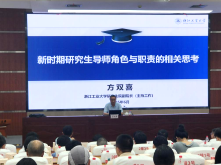 浙江工业大学研究生院院长方双喜教授、杭州电子科技大学研究生院长范影乐教授分别进行题为《新时期研究生导师角色与职责的相关思考》和《研究生教育高质量发展的思考与实践》的专题报告与经验分享,分析总结了导师在学生培养指导过程中常见问题及相关处理办法,提出推进学院研究生培养工作走向精细化、科学化,助力学院研究生人才培养高质量发展。