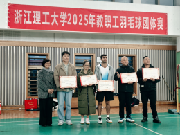 校工会主办、教工羽毛球协会承办的2025年教职工羽毛球团体赛在下沙校区羽毛球馆圆满落幕。作为赛事种子选手,纺织学院(丝绸学院)代表队身着统一队服奋勇拼搏,历经两阶段激烈角逐,最终斩获季军殊荣,展现了学院教职工昂扬向上的精神风貌与强大的团队凝聚力。