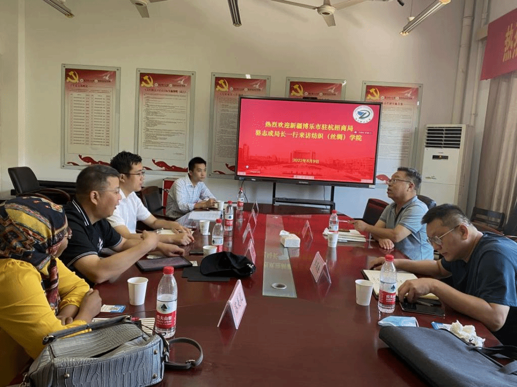 8月9日上午,新疆博乐市驻杭州招商局骆志成局长、白英奎副局长来纺织(丝绸)学院访问交流。学院副院长余厚咏、纺织品(丝绸)设计系主任金子敏、教学科研办公室主任顾越桦、纺织材料系马明波、非织造工程系苏美儿等教师代表参加了交流会。