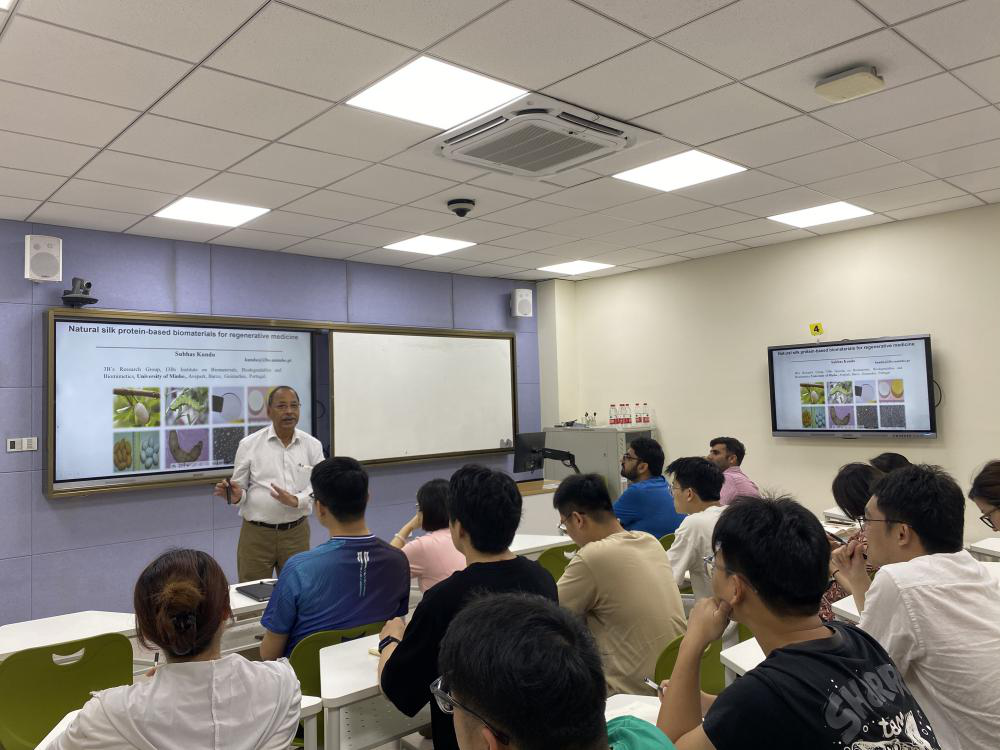 (国际丝绸学院)邀请东北林业大学王成毓教授、浙江农林大学金春德教授、葡萄牙米尼奥大学Subhas C Kundu教授来院作学术交流。其间,王成毓教授、Subhas C Kundu教授作了专业领域前沿学术报告。