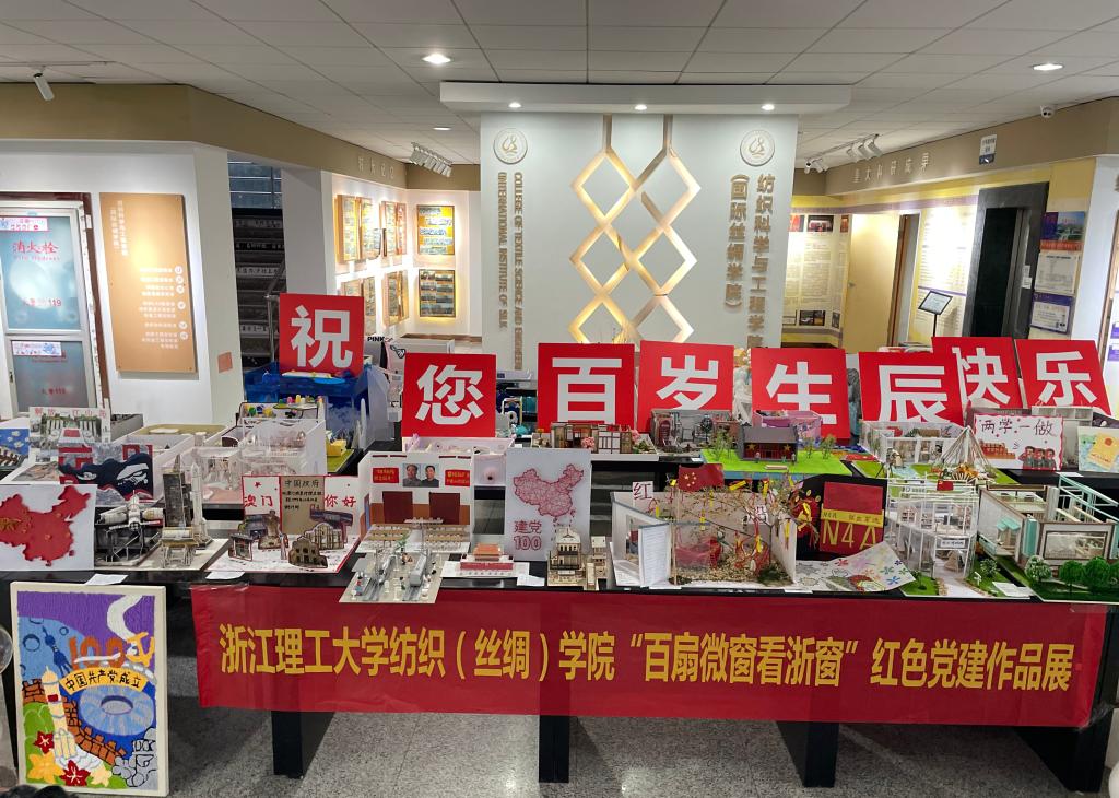 纺织(丝绸)学院一楼展示了近百扇“红”意盎然、丝韵动人的橱窗作品,展现了浙江打造重要窗口,建设共同富裕示范区的微观风貌,引来众多学生旁观拍照留念。