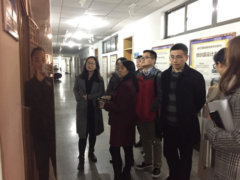 近2小时的交流后,大家一起参观了CAD机房,纺织品设计专业课实验室,大提花实验室,学生作品展厅,并就相关工作的开展进行了进一步的交流。