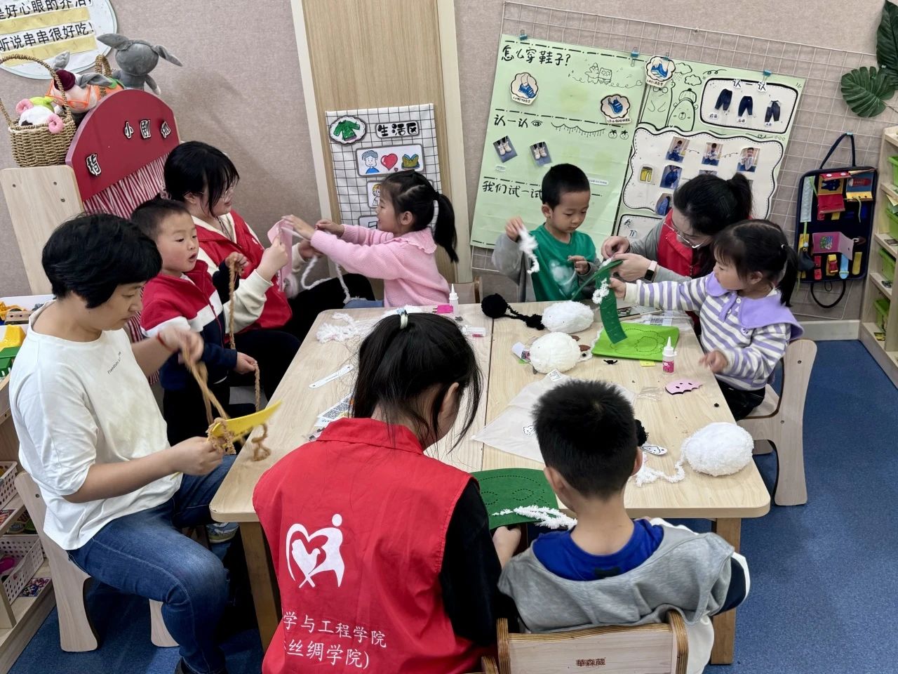 4月28日,浙江理工大学纺织科学与工程学院(国际丝绸学院)“三丝”励志服务队志愿者们与研究生染整第二党支部党员,共同策划实施以“千丝万里·大手小手活化非遗”为主题的活动,让小朋友们近距离欣赏、体验非遗文化的魅力,在幼小的心灵播撒保护传承非遗文化的种子。