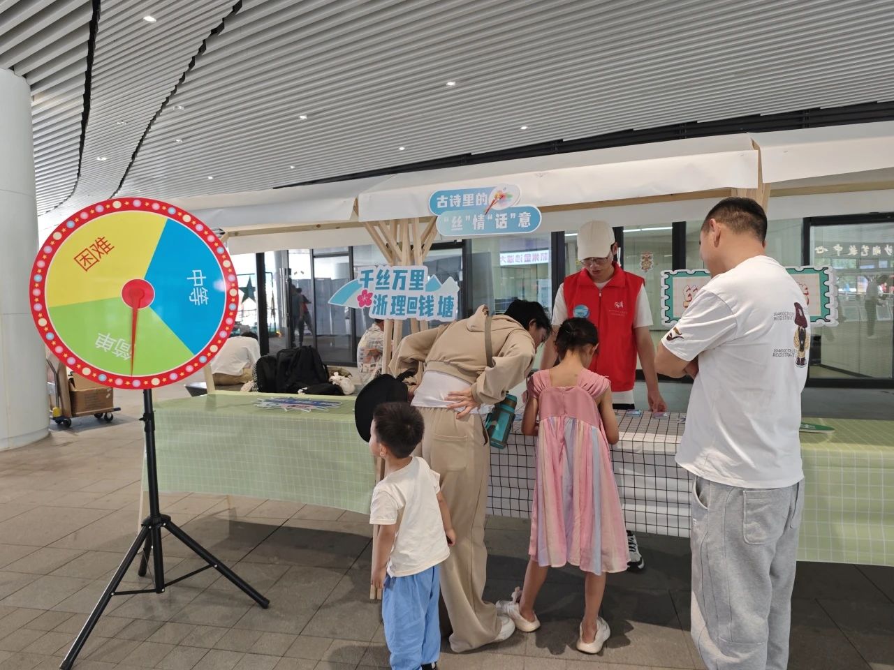 5月18日,一场别开生面丝绸文化科普活动在金沙湖大剧院成功举办,此次活动以“千丝万里 浙理@钱塘”为主题,由杭州市钱塘区社会科学界联合会与浙江理工大学社科发展服务中心联合主办,浙江理工大学纺织科学与工程学院(国际丝绸学院)、中国科协“三丝而行”学风涵养工作室承办。本次活动吸引众多家庭携小朋友参与,小朋友们成为当天的主角,带着好奇与兴奋一同探索丝绸文化的奥秘。