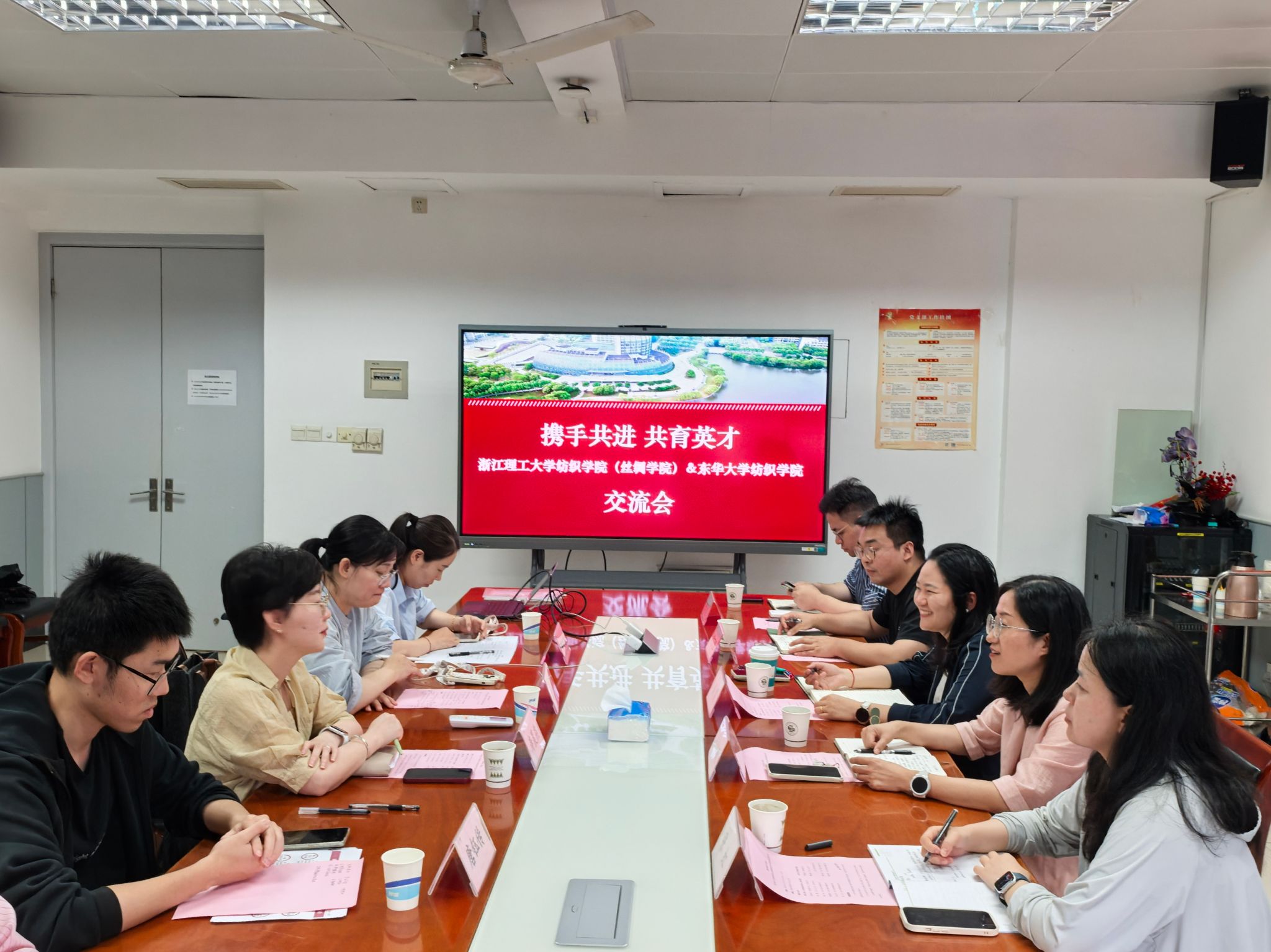 为贯彻落实学校学工团队“行动学习计划”,推动学生工作高质量发展,6月10日上午,纺织学院(丝绸学院)党委副书记、纪委书记张孝凤率学工办本研辅导员赴东华大学纺织学院开展学生工作交流会。东华大学纺织学院党委副书记寿晨燕及学院学工团队成员出席会议,双方围绕学风建设、创新创业、科研竞赛、导学关系以及深造就业等议题展开对话。