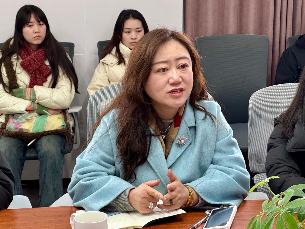 沈碧颖介绍了2025届毕业生的招聘需求及绍兴市的引才政策。7位本科生、研究生就个人关心的问题与HR、校友们进行了交流,并在现场投递了简历。
