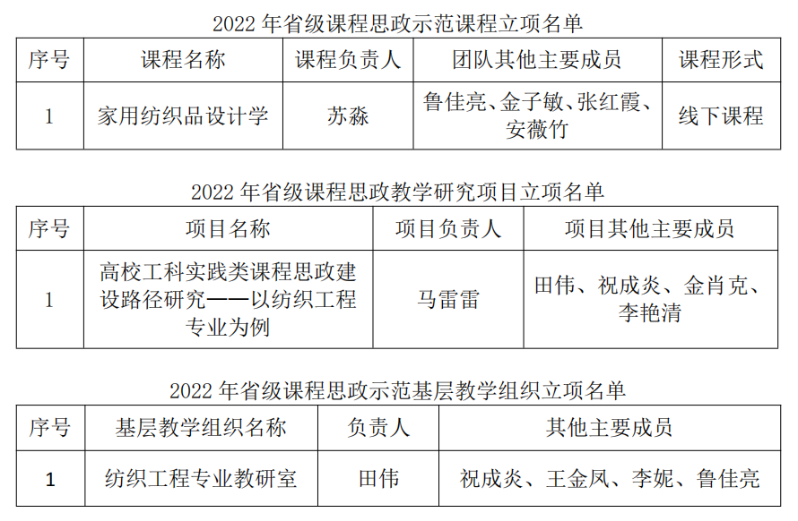 (国际丝绸学院)喜获省级课程思政示范课程1门、省级课程思政教学研究项目1项、省级课程思政示范基层教学组织1个。
