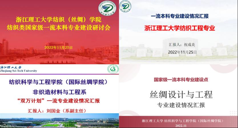 纺织工程专业负责人祝成炎教授从纺织工程专业定位、历史沿革、特色优势、建设举措和成效、人才培养质量、下一步工作计划等方面,介绍了纺织工程专业建设工作。同时分享了典型建设经验,例如,课程思政优质资源建设及校际推广共享;纺织工程专业顺利通过工程教育认证;课程和教材建设、教学改革和研究取得各级各类多项成果;学生学科竞赛、毕业设计、专利获批等方面获得丰硕人才培养佳绩。