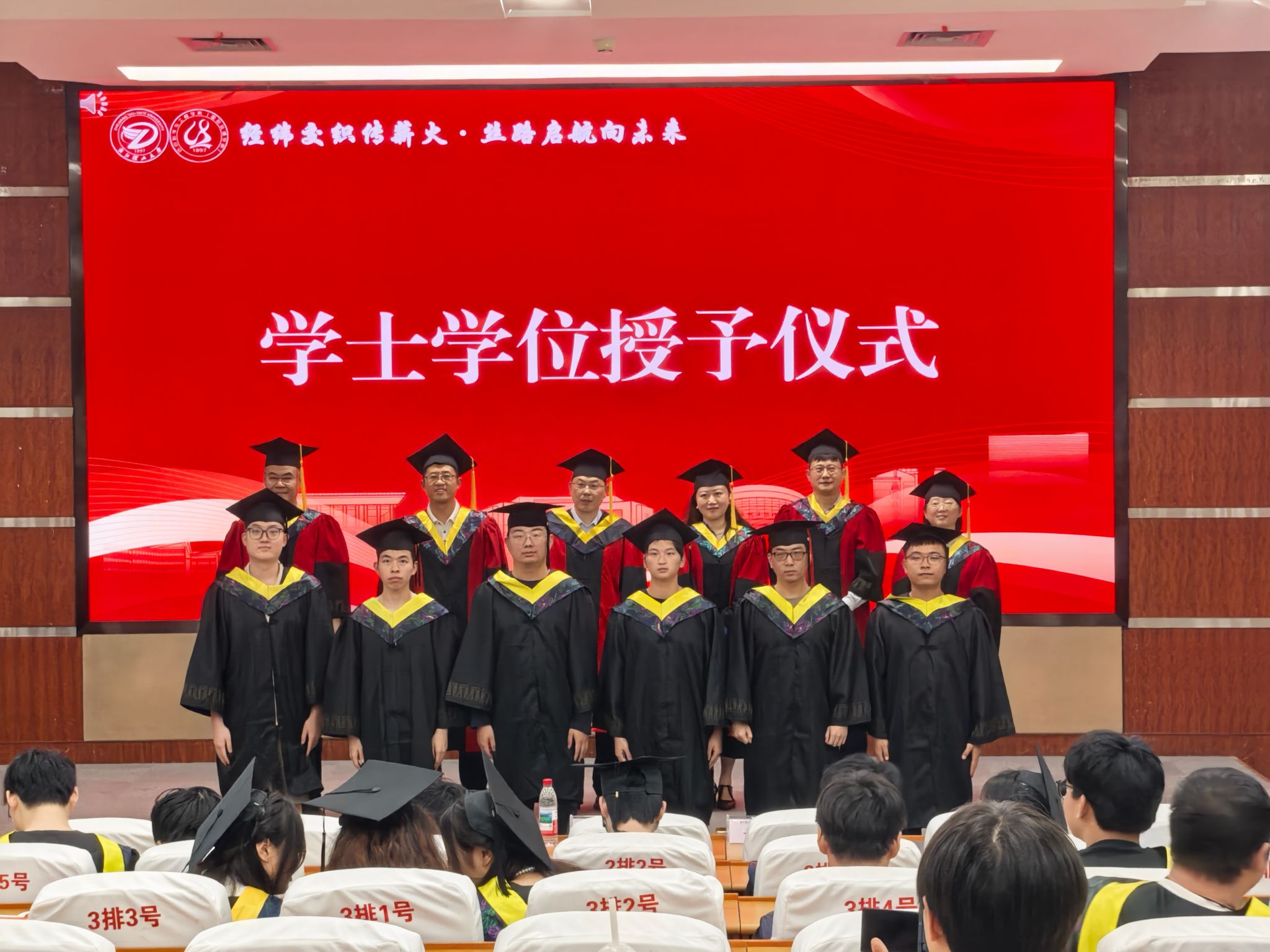 毕业典礼后,学院举行了2025届本科生学士学位授予仪式。学院学位委员会成员代表为毕业生逐一拨穗正冠。