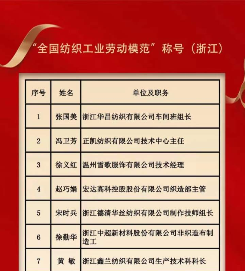 浙江理工大学纺织(丝绸)学院校友黄敏获“全国纺织工业劳动模范”称号