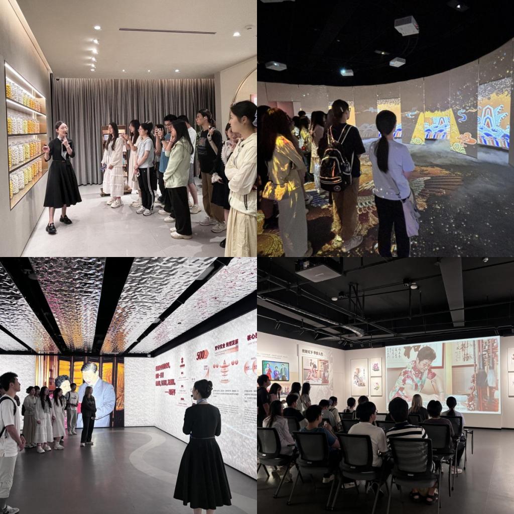 师生们在工作人员的带领下,参观了万事利集团的企业文化中心、创新研发中心、AI设计中心和数字文化展厅等新质生产力科普馆,亲身体验了科技创新如何为传统纺织业带来深刻变革。这场沉浸式研学让师生们深切体会到,在新质生产力驱动下,曾经的劳动密集型产业正在向数据驱动、智能创新的现代化产业加速转型。