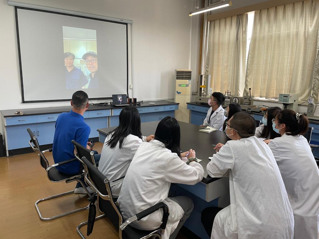 而后,刘佳文校友以视频直播的方式,向在座的研究生们介绍了自己办公的工厂车间。从机器配置、生产过程、环境要求等多个方面实地讲解了特种纸的生产制备过程。在车间的这堂实践课上,他和实验室的师弟师妹们通过线上平台交流,回答了师弟师妹们所关心的问题。他鼓励在座研究生们一定要珍惜在校求学时光,通过课堂学习、实验室操作和企业实践培养扎实的理论功底和娴熟的动手技能。要静得下心、沉得住气、迈得开腿,吃得了苦、通过不断地劳动和实践才能够悟透工科原理,方能破解一个个行业痛点难题。他的精彩发言使得在座研究生掌声不断、深有共鸣。