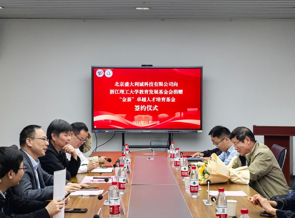 11月15日下午,“浙江理工大学‘金蚕’卓越人才培育基金”捐赠仪式在纺织(丝绸)学院312会议室成功举行。91级染整专业校友、北京盛大利诚科技有限公司总经理杨积林,校对外联络办公室(校友办)副主任应黎君,纺织(丝绸)学院党委书记徐伟强、院长于斌、党委副书记方平,原材料与纺织学院91染整(1)班班主任姜坪出席,参加捐赠仪式的还有学院各系教师代表、校友联络服务中心全体成员以及各年级学生代表等。仪式由方平主持。