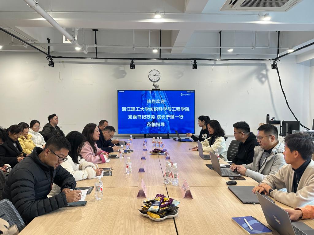 凌迪科技(Style3D)由我院1989级染整工程专业校友刘郴创立,是一家以“AI + 3D” 技术为核心驱动力的科技企业,是国内领先的纺织服装产业数字化解决方案服务商,致力于通过3D建模、虚拟仿真、人工智能等技术推动行业全链路数字化转型。理论学习中心组成员首先参观企业展厅,详细了解凌迪科技在数字面料研发、虚拟服装设计、智能制造等领域的核心技术成果,并现场观摩数字化设计平台的操作演示。