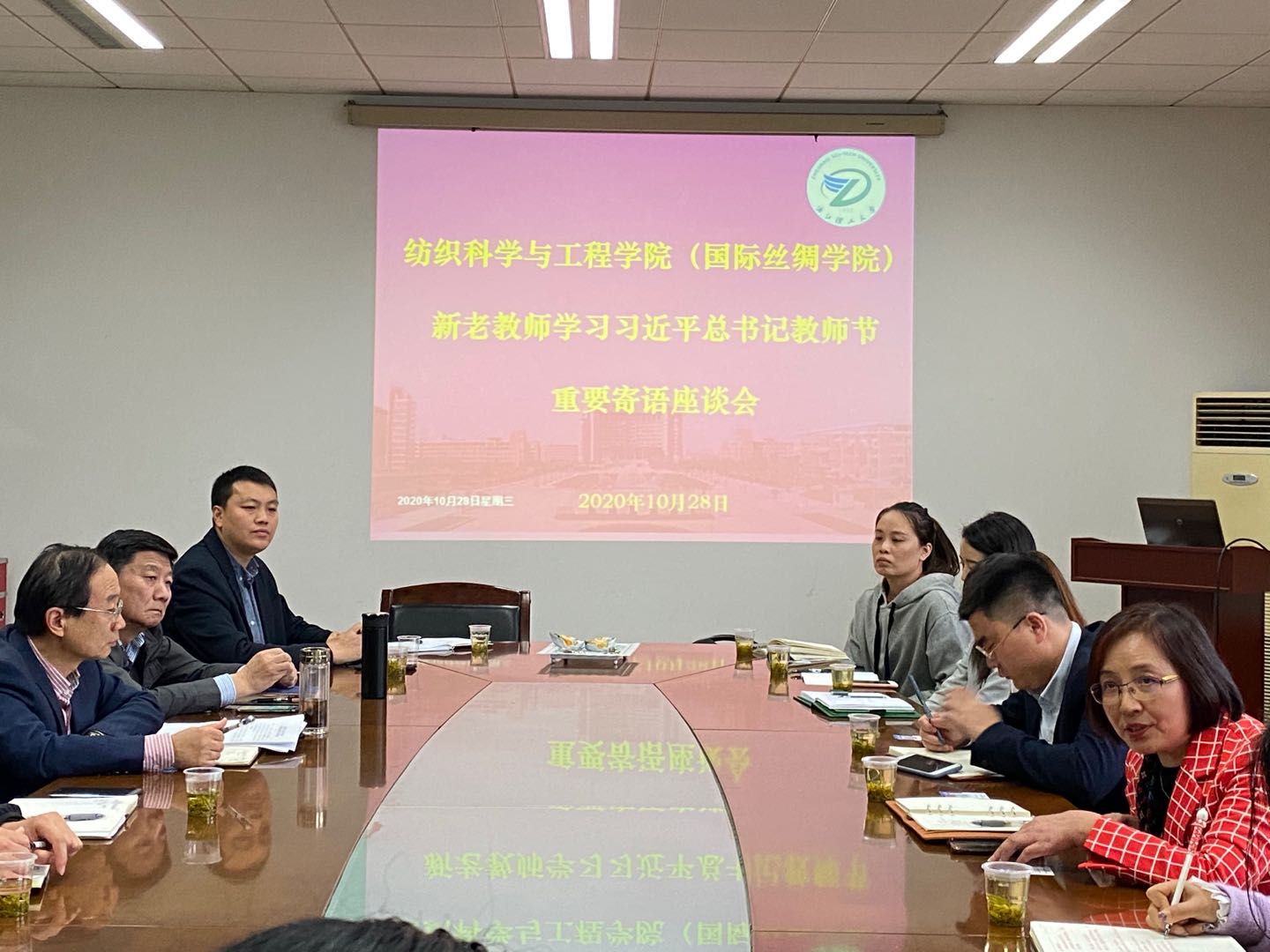 10月28日下午,为深入学习贯彻习近平总书记教师节重要寄语精神,进一步加强师德师风建设,构建“三全育人”大格局,纺织科学与工程学院(国际丝绸学院)在学院312会议室召开了新老教师学习习近平总书记教师节重要寄语精神座谈会。学院党委书记和副书记、办公室主任、优秀教师代表、2020年新进校教师、纺织工程系教师党员参加了座谈会。会议由“全国高校党建工作样板党支部”纺织工程系教工党支部承办,支部书记杜平凡教授主持。