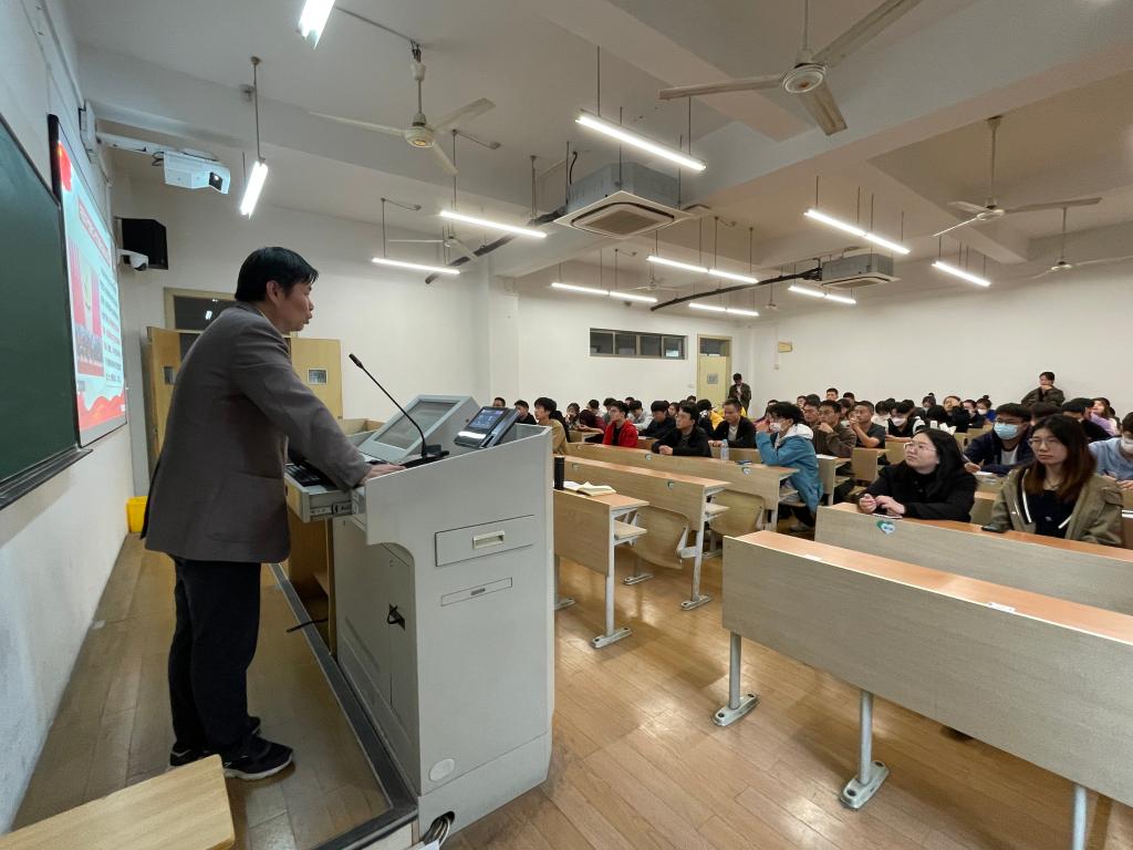 学院组织员周皓荻老师向在座的培训学员们介绍了本期党校的管理规定和学员守则,并明确强调了学习要求和考勤纪律要求,他提醒在座的学员们要高度重视党校课程的学习,灵活运用线上易班平台和线下教学资源,结合自身专业和课程实践学思践悟党的二十大精神。