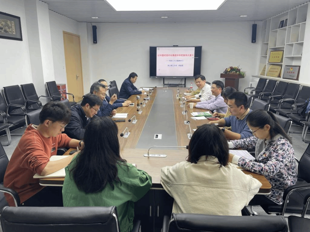 (国际丝绸学院)理论学习中心组开展“党的二十大精神专题学习研讨会”。研讨会邀请了我校马克思主义学院郑显理副教授作党的二十大精神学习专题辅导。学院理论中心组成员参与了此次研讨会,研讨会由学院党委书记徐伟强主持。
