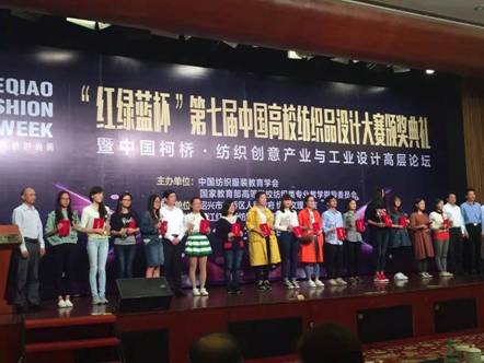 2015年10月21日,“红绿蓝杯”第七届中国高校纺织品(面料)设计大赛颁奖典礼在绍兴县柯桥镇举行,我校材料与纺织学院学生作品喜获二等奖3项、三等奖2项、优胜奖10项。
