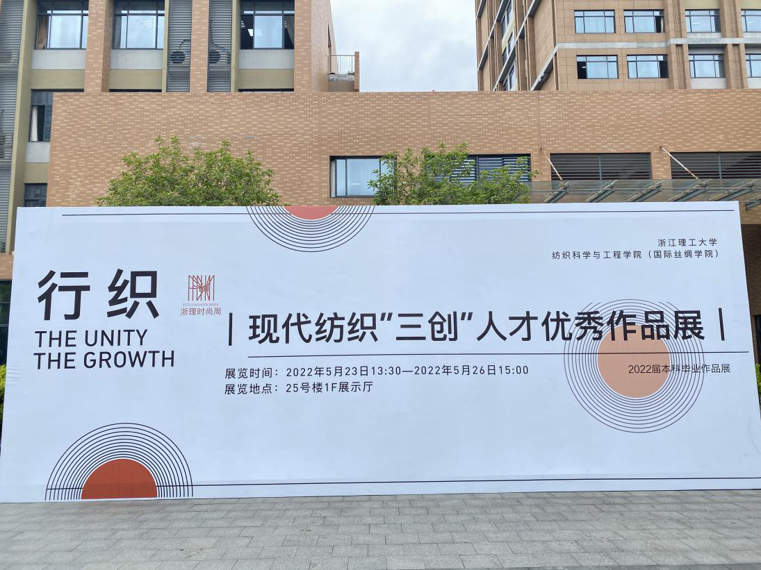 2022年5月23日至26日,浙江理工大学纺织科学与工程学院(国际丝绸学院)在25号楼1F展示厅,成功举办了行织——现代纺织“三创”人才优秀作品展。