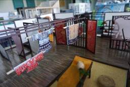 课程按市场调研、透视图绘制、效果图表现、纺织品展厅(专卖店)设计几个阶段进行了教学训练。本次展览展出了同学们精心制作的20余个主题不同的“纺织品展厅设计”的手工模型。同学们根据设定的纺织品品牌及产品风格特征,针对性完成了展厅设计,在出具平面图、效果图之后,运用较简易的材料动手制作了展示厅的模型,这是同学们在32课时的《室内设计》学习中收获的代表性成果。