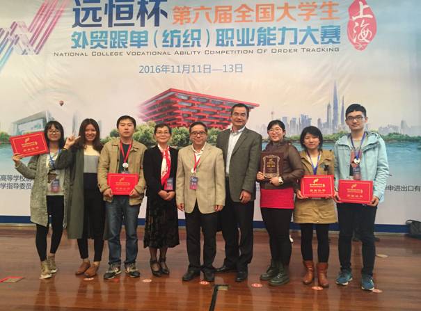 由教育部高等学校纺织服装教学指导委员会、中国纺织服装教育学会联合主办,东华大学和上海远恒电子工程有限公司联合承办的第六届全国大学生外贸跟单(纺织)职业能力大赛于11月11日-11月13日隆重举行。来自全国各地35个院校的48支代表队、220余名师生参加了本届比赛。本次大赛包括理论知识和实务操作两部分,以公平、公正、公开为准则。此次大赛中,由我校材料与纺织学院、丝绸学院组队的浙江理工大学代表队再次取得了优异的成绩,荣获团体二等奖。我院参赛选手分别为14级纺织工程专业韩红波、赵磊、毛思尧, 14级轻化工程专业黄锦蕾。其中,韩红波、黄锦蕾获得个人二等奖,赵磊获得个人三等奖,我院由王金凤、李永强、陈慰来三位老师带队。